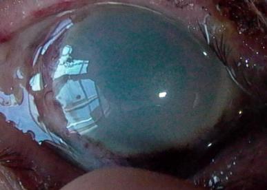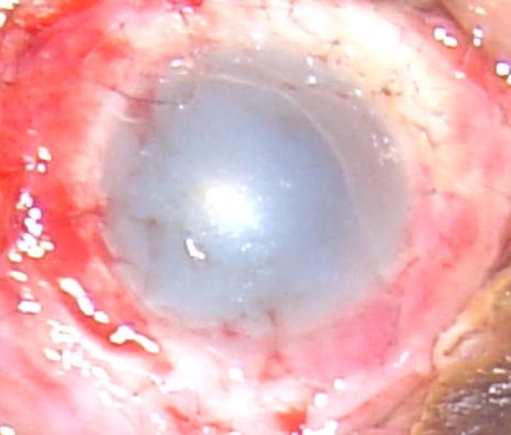 以前的相片是没有接触镜覆盖的,今天给病人的第二只眼做了单纯羊膜覆盖术,双层的,第一只眼的相片今天忘照了,哈!不过看不出异体角膜细胞的生长,后天换药时我在照一便。